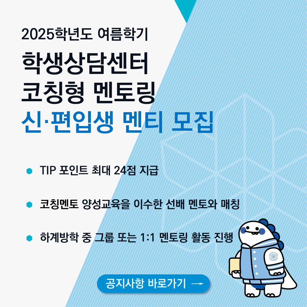 - 12.31(Wed) ~ 01.02(Fri)`25학년도 동계 계절학기 등록기간