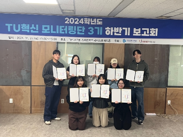 -기한연장-[대학혁신지원사업단] 2025학년도 TU혁신 모니터링단 4기 모집(~3/16(일)까지)2025학년도TU혁신 모니터링단 4기 모집 공고(기한 연장) 한국공학대학교 대학혁신지원사업단에서는 사업 수요자인 재학생들이 직접 대학혁신지원사업 전반을 점검하고, 운영 프2025.03.12