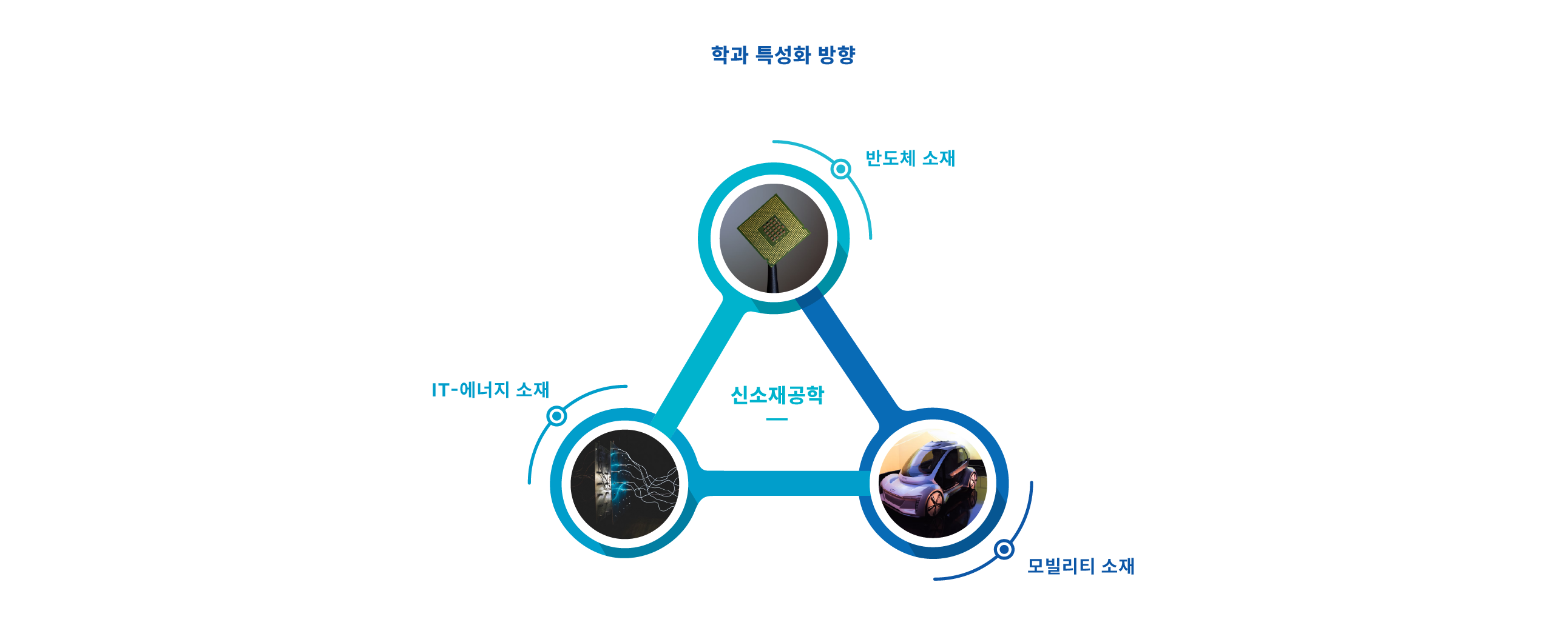 우리 신소재공학과는 반도체, IT-에너지, 모빌리티 소재로 특성화하여 관련 이론과 실습을 병행하여 교육하고 있습니다.