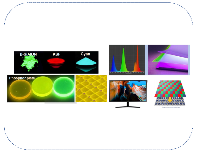 LED용 광변환 소재인 YAG, PIG, PC, QD 등을 개발하였고, 다수의 SCI급 논문을 출판하였으, 최근