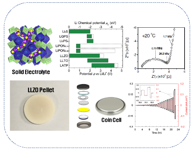 체전해질이 적용된 전고체전지의 연구가 활발하게 진행되고 있다. 본 연구실에서는 산화물계 고체전해질을 합성하고 셀 형태로 조립하여 다양한