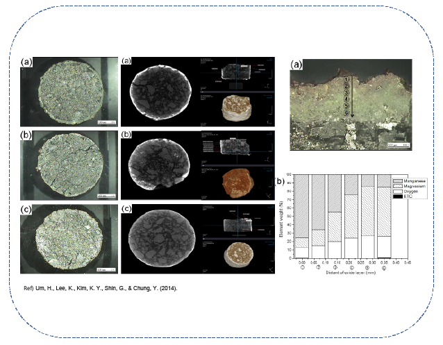 내화재/용강/슬래그 반응에 따른 계면 분석을 통해 내화재의 부식메커니즘 연구를 수행하고 있다.