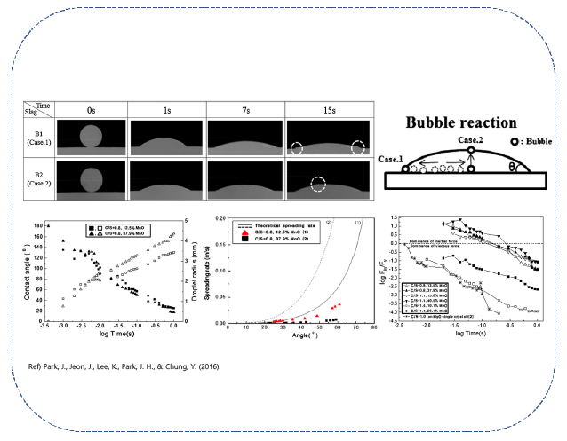 내화재/슬래그 계면 접촉 및 퍼짐 거동 관찰을 통한 내화재/슬래그 반응 및 젖음성을 평가하는 연구를 수행하고 있다.