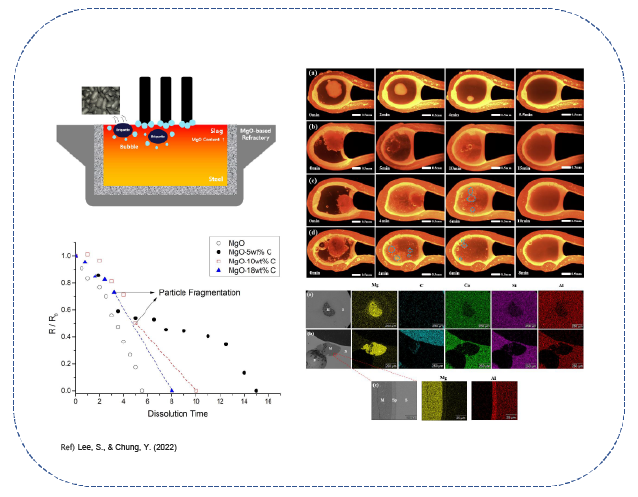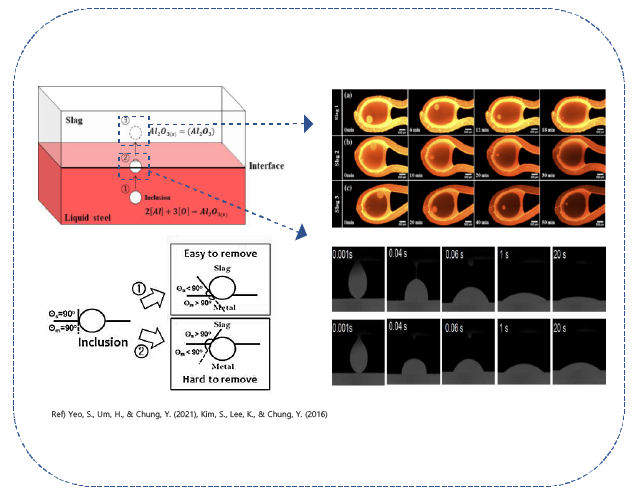 개재물/슬래그 성분에 따른 계면 관찰을 통해 개재물 제거 메커니즘 연구를 수행하고 있다.
