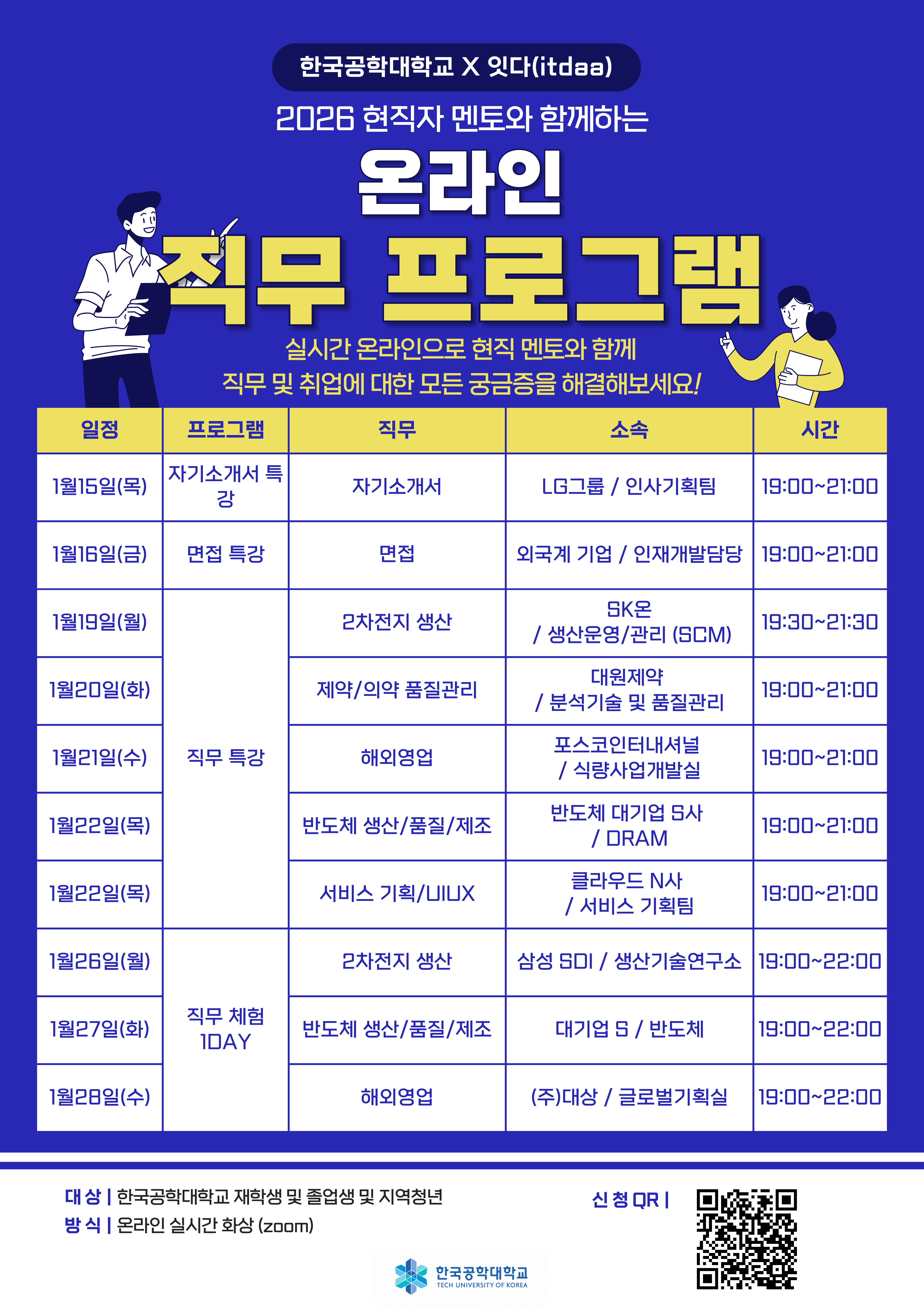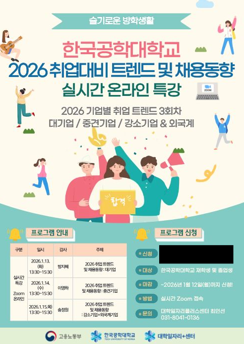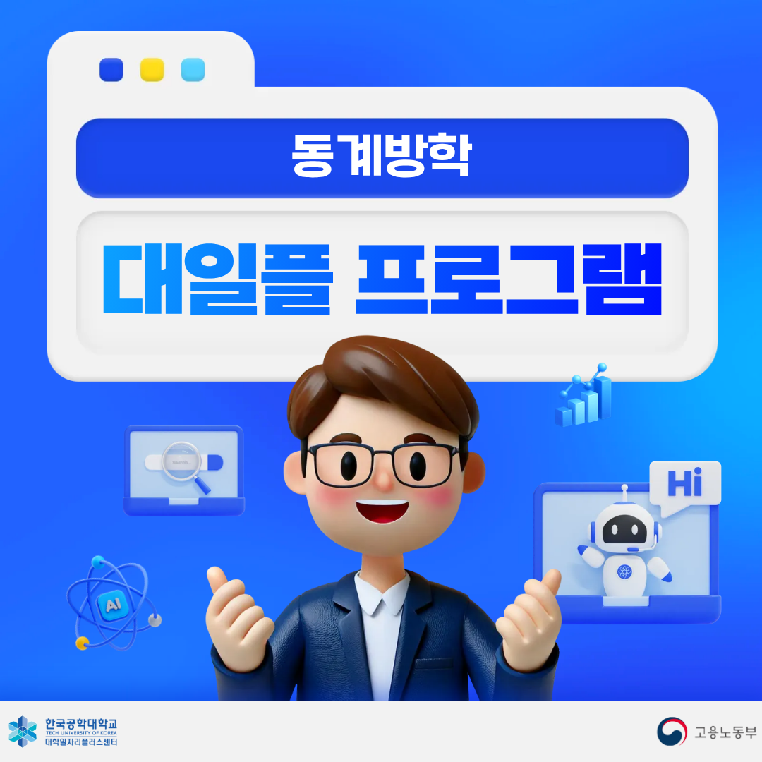 fnctId=bbs,fnctNo=1310 게시물 검색 검색하기 제목 작성자 RSS 2.0 189건, 현재페이지: 1/22 게시글 리스트 고용노동부 4개 사업 우수선정 작성일 2026.01.28 작성자 진로취업지원팀 조회 4 고용노동부가 청년들의 첫걸음을 응원합니다. 작성일 2026.01.21 작성자 진로취업지원팀 조회 8 2026 공공기관 채용정보 박람회 작성일 2026.01.20 작성자 대학일자리플러스센터 조회 12 동계방학 대일플 프로그램 작성일 2026.01.16 작성자 대학일자리플러스센터 조회 13 청년지원제도 작성일 2026.01.15 작성자 대학일자리플러스센터 조회 11 26현직자 멘토와 함께하는'온라인 직무 프로그램' 작성일 2026.01.08 작성자 진로취업지원팀 조회 12 26'취업대비 트렌드 및 채용동향 실시간 온라인 특강 작성일 2026.01.07 작성자 진로취업지원팀 조회 10 겨울방학 방문가능시간 안내 작성일 2026.01.06 작성자 대학일자리플러스센터 조회 10 대일플센뉴스 1~2월호 작성일 2026.01.05 작성자 대학일자리플러스센터 조회 9 처음 121 1 2 3 4 5 6 7 8 9 10 다음 페이지 다음 끝