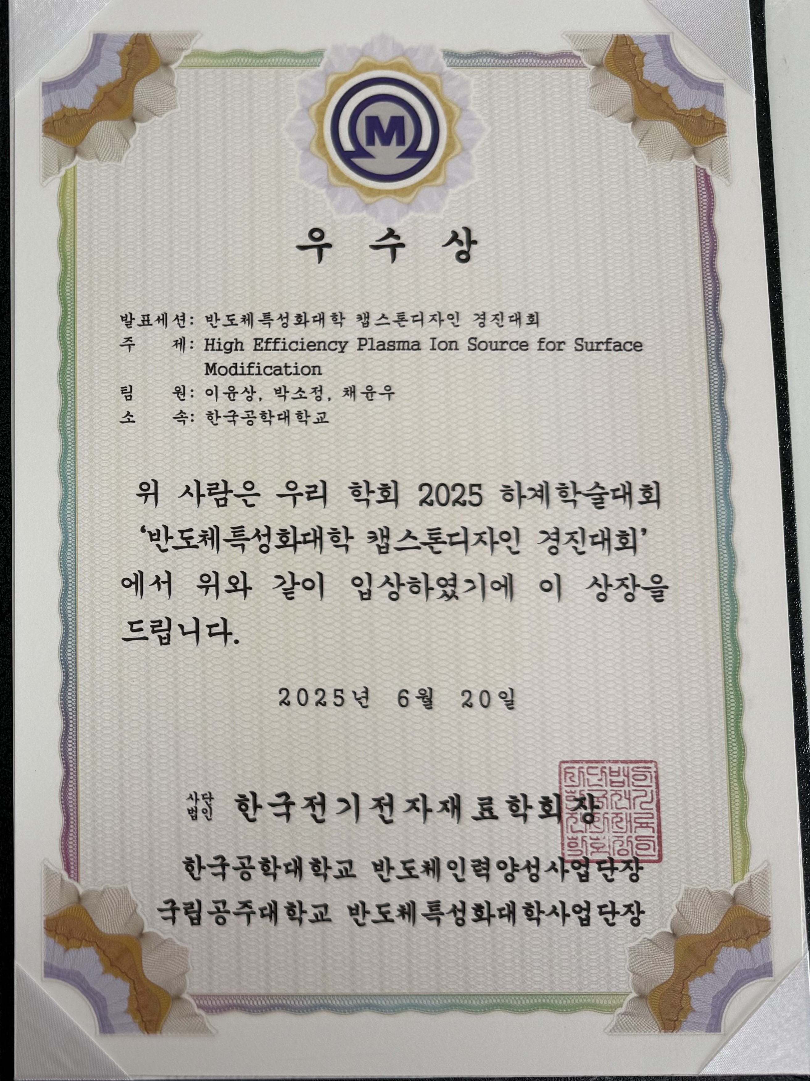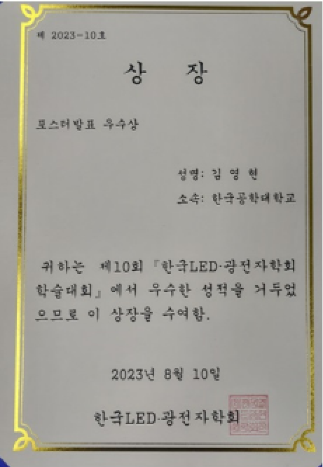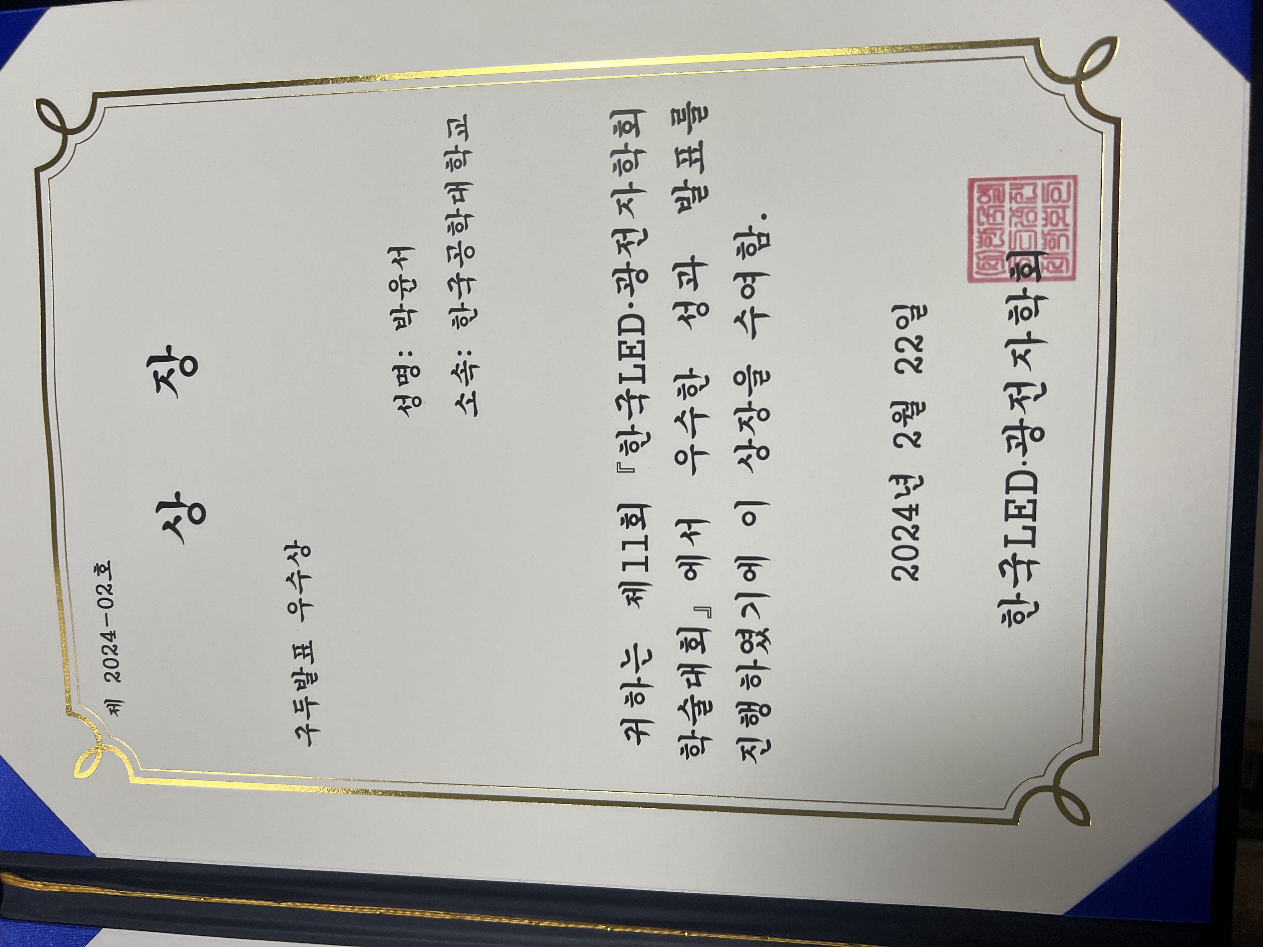 fnctId=bbs,fnctNo=1363 게시물 검색 검색하기 제목 작성자 RSS 2.0 13건, 현재페이지: 1/2 게시글 리스트 "반도체 특성화 대학 캡스톤 디자인 경진대회" 우수상 수상 작성일 2025.07.16 작성자 윤정혜 조회 19 "제 4회 캡스톤 디자인 경진대회" 최우수상 수상 작성일 2025.07.16 작성자 윤정혜 조회 17 "제 24회 한국공학대전" 한국산업기술진흥원장상 수상 작성일 2025.02.12 작성자 윤정혜 조회 45 "제 3회 캡스톤 디자인 경진대회" 장려상 수상 작성일 2025.02.12 작성자 윤정혜 조회 49 "제 3회 캡스톤 디자인 경진대회" 장려상 수상 작성일 2025.02.12 작성자 윤정혜 조회 39 "제 11회 한국LED 광전자학회 학술대회" 포스터부문 우수상 수상 작성일 2025.02.12 작성자 윤정혜 조회 31 "제 11회 한국LED 광전자학회 학술대회" 구두발표부문 우수상 수상 작성일 2025.02.12 작성자 윤정혜 조회 30 "제 10회 한국LED 광전자학회 학술대회" 포스터부문 우수상 수상 작성일 2025.02.12 작성자 윤정혜 조회 25 처음 12 1 2 다음 페이지 끝