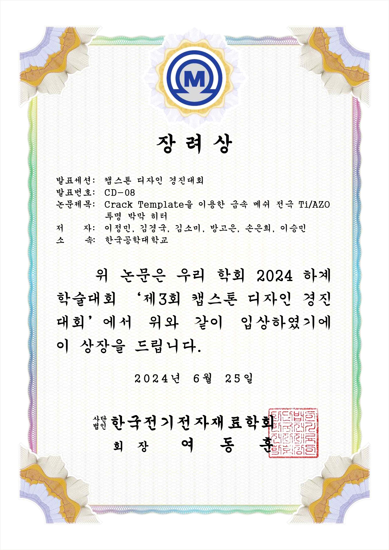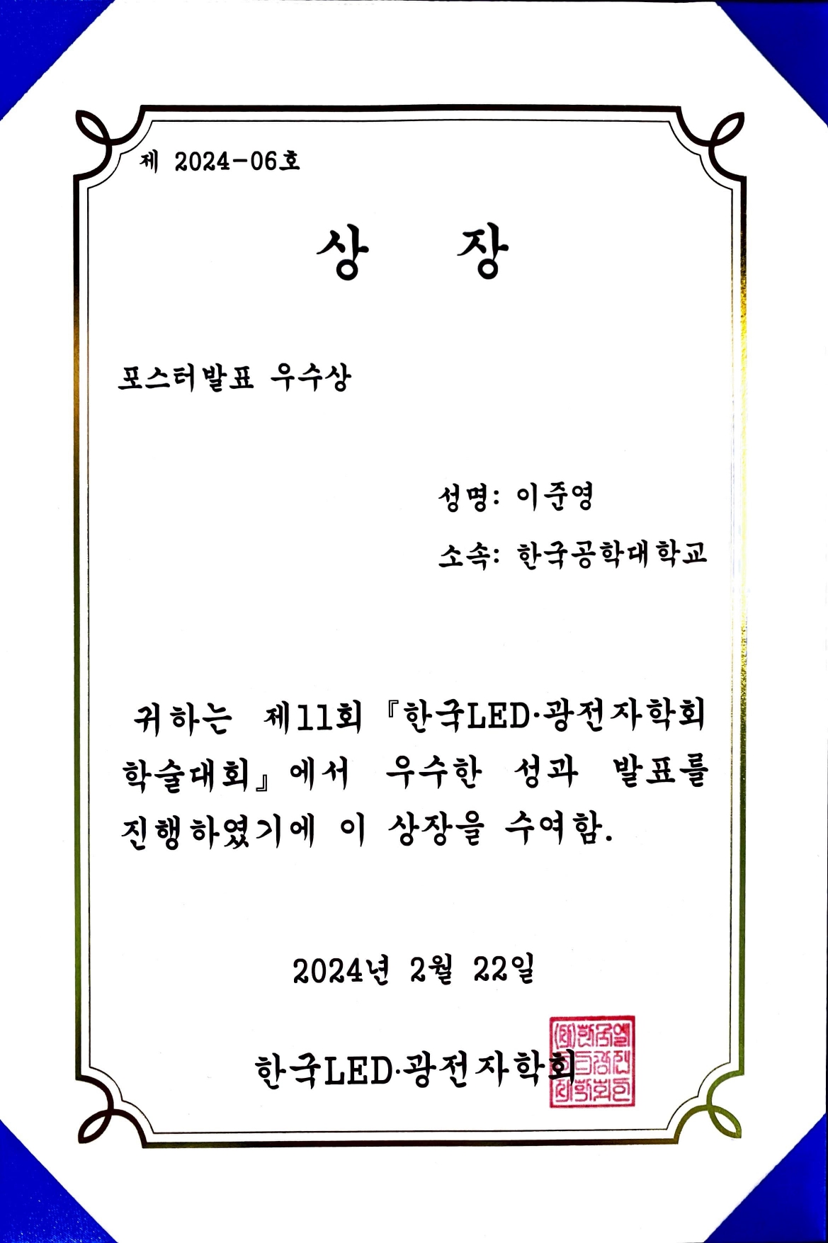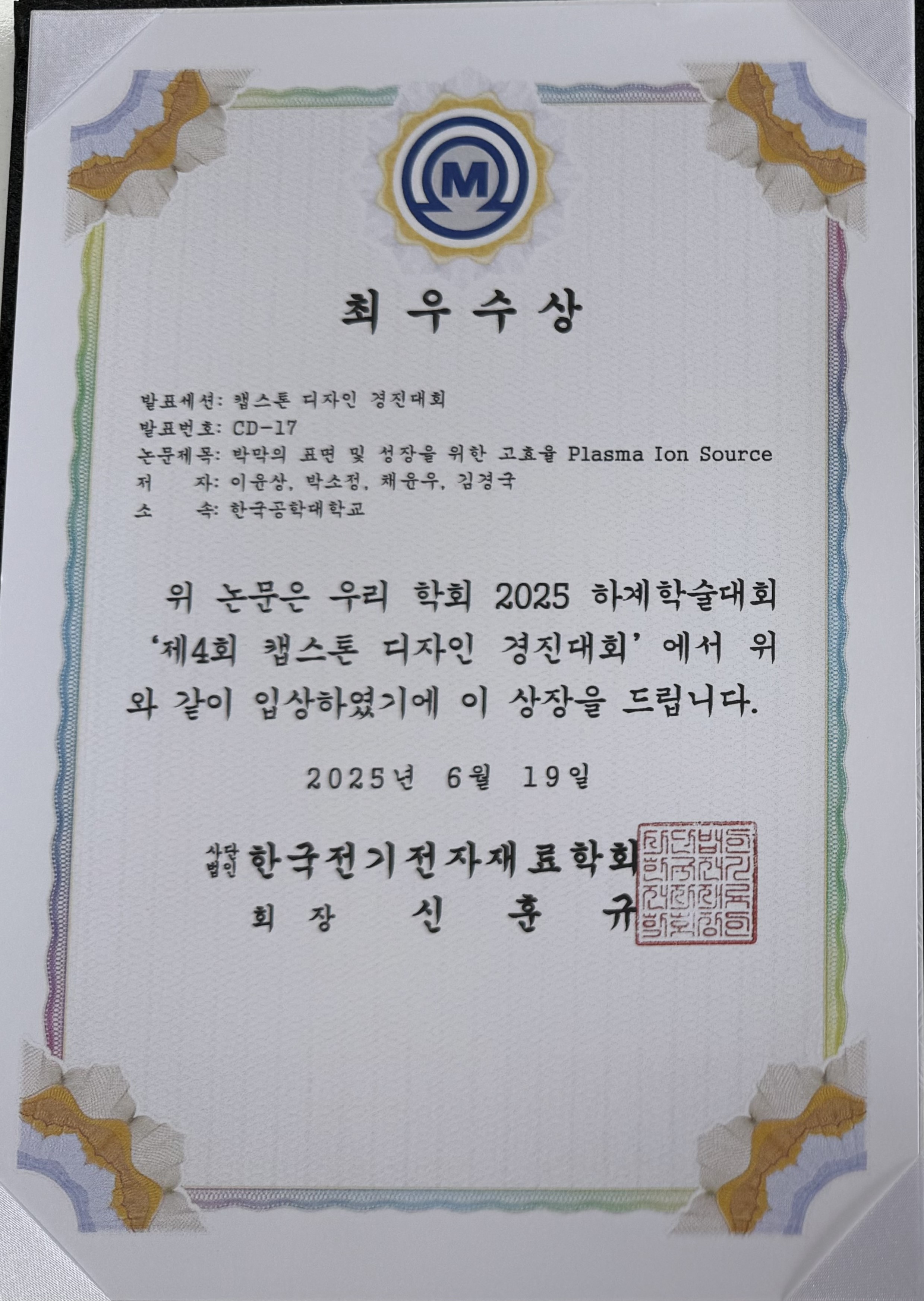 fnctId=bbs,fnctNo=1363 게시물 검색 검색하기 제목 작성자 RSS 2.0 13건, 현재페이지: 1/2 게시글 리스트 "반도체 특성화 대학 캡스톤 디자인 경진대회" 우수상 수상 작성일 2025.07.16 작성자 윤정혜 조회 19 "제 4회 캡스톤 디자인 경진대회" 최우수상 수상 작성일 2025.07.16 작성자 윤정혜 조회 17 "제 24회 한국공학대전" 한국산업기술진흥원장상 수상 작성일 2025.02.12 작성자 윤정혜 조회 45 "제 3회 캡스톤 디자인 경진대회" 장려상 수상 작성일 2025.02.12 작성자 윤정혜 조회 49 "제 3회 캡스톤 디자인 경진대회" 장려상 수상 작성일 2025.02.12 작성자 윤정혜 조회 39 "제 11회 한국LED 광전자학회 학술대회" 포스터부문 우수상 수상 작성일 2025.02.12 작성자 윤정혜 조회 31 "제 11회 한국LED 광전자학회 학술대회" 구두발표부문 우수상 수상 작성일 2025.02.12 작성자 윤정혜 조회 30 "제 10회 한국LED 광전자학회 학술대회" 포스터부문 우수상 수상 작성일 2025.02.12 작성자 윤정혜 조회 25 처음 12 1 2 다음 페이지 끝