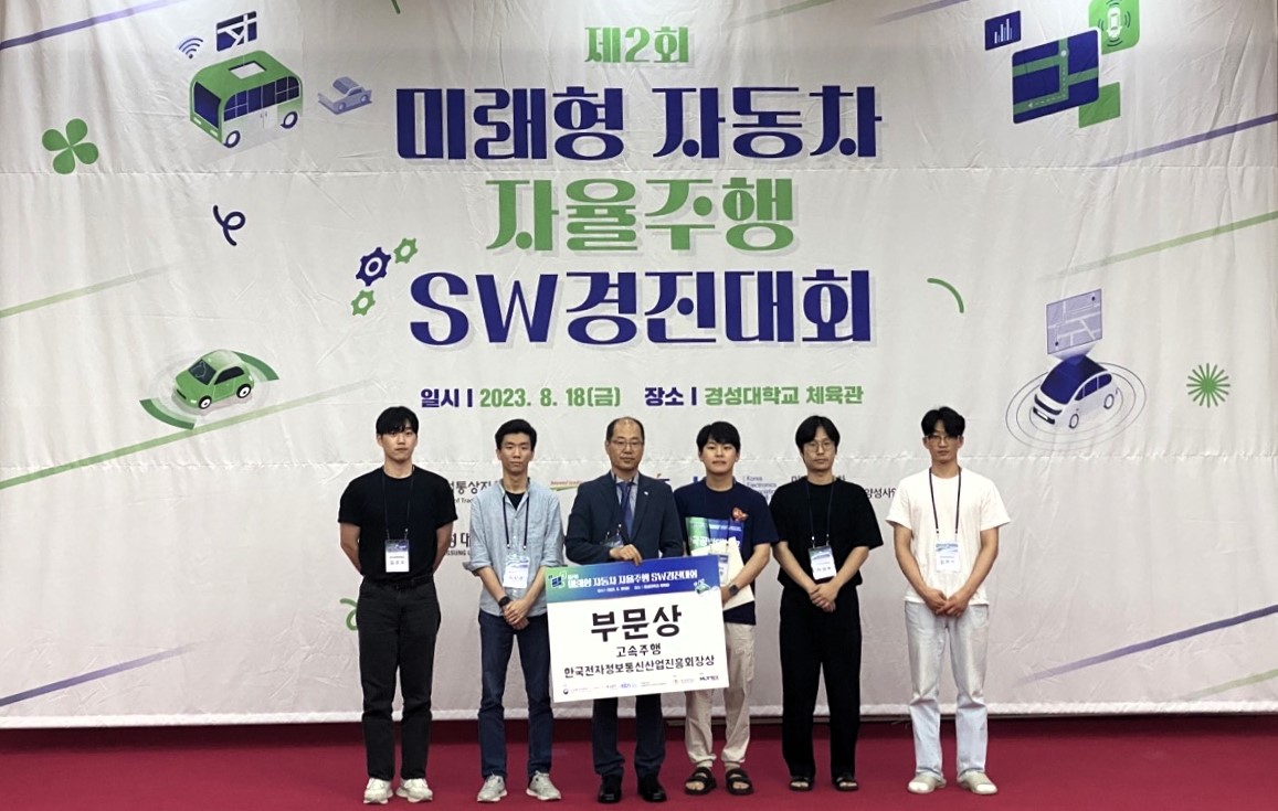 우리대학 미래자동차공학 융합전공 학생들로 구성된 티노팀이 8월 18일 경성대학교에서 열린 제2회 미래형 자동차 자율주행 소프트웨어 경진대회에서 부문상(한국전자정보통신산업진흥회장상)인 고속주행상을 수상했다.